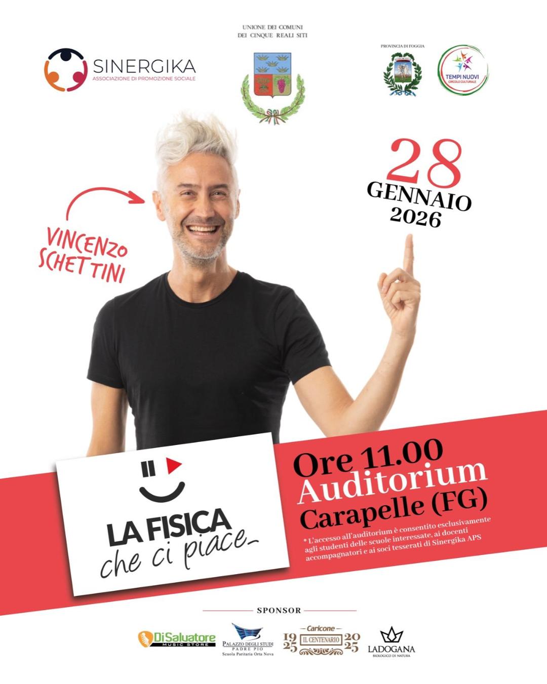 SINERGIKA – Associazione di Promozione Sociale organizza l’evento “La fisica che ci piace”, con la partecipazione del professor Vincenzo Schettini.